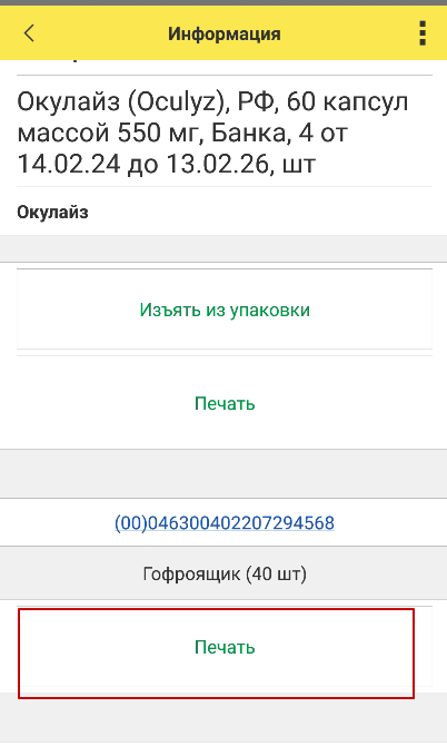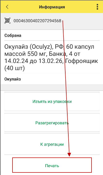 3. Посмотреть в какой логистический код упакована марка, и под этим кодом нажать "Печать"