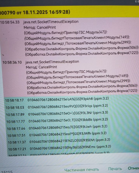 Ошибка java.net.SocketTimeoutException в методе CancelPrint при частичной печати при нажатии "Отмена" после отправки на печать более 1000 кодов.