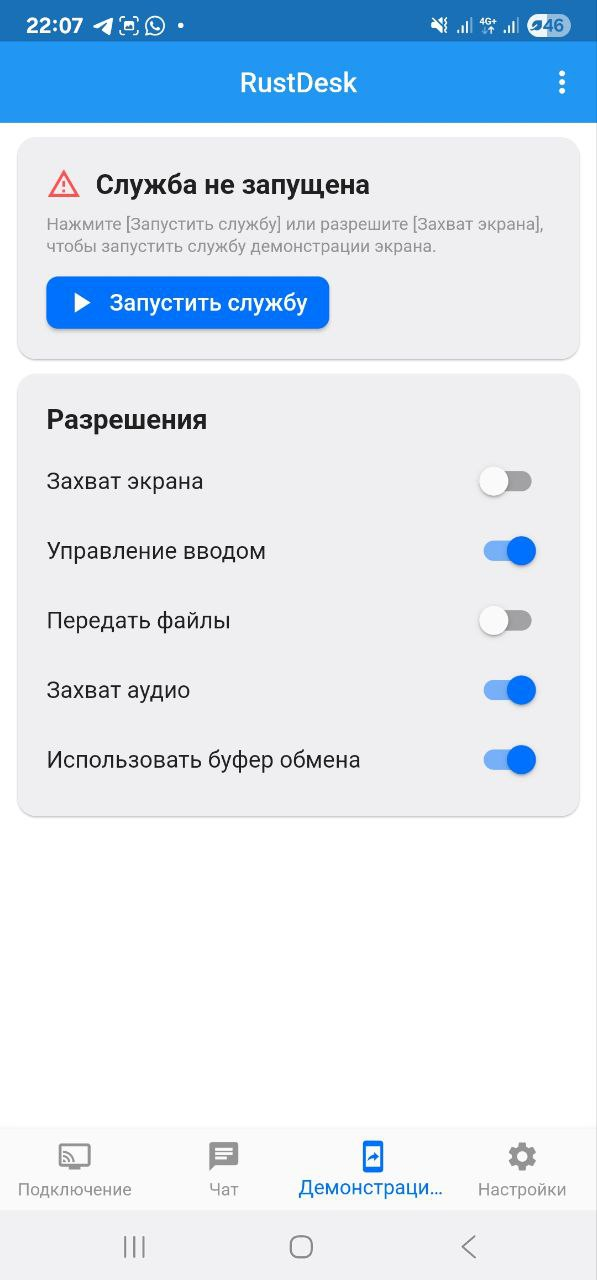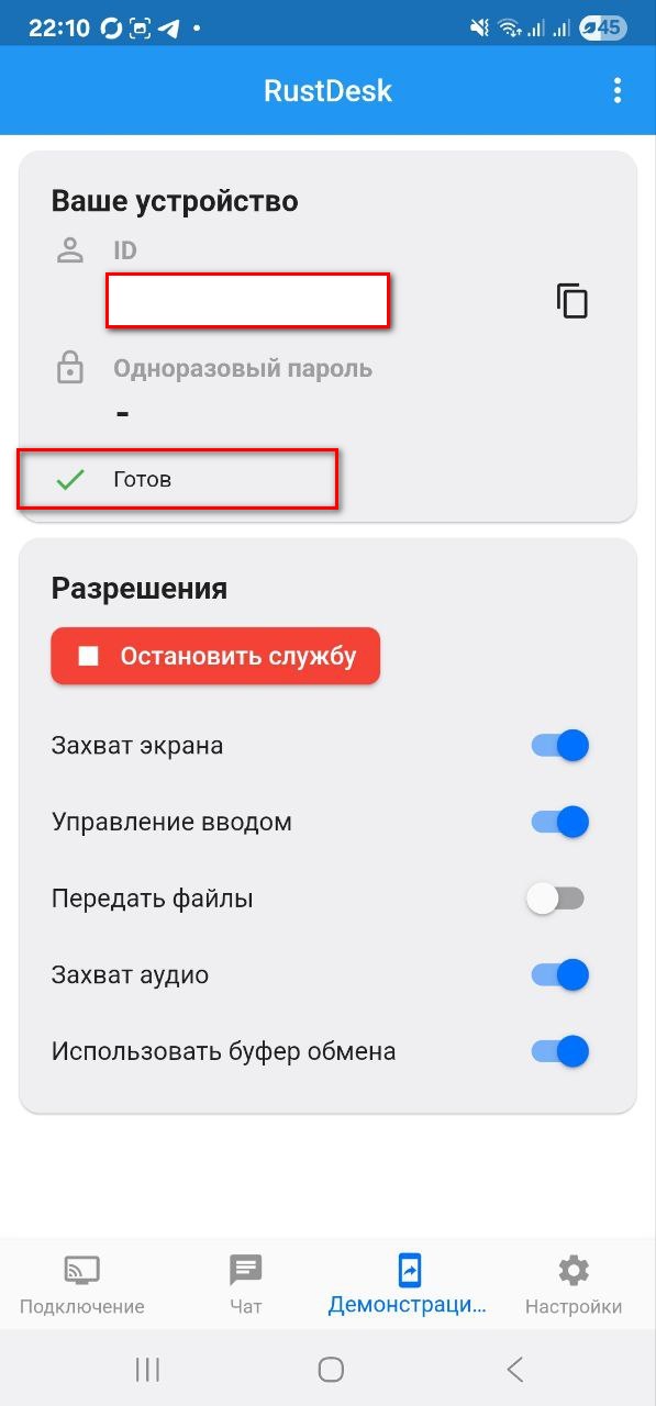 - Подключиться к устройству на Android через RustDesk с ПК