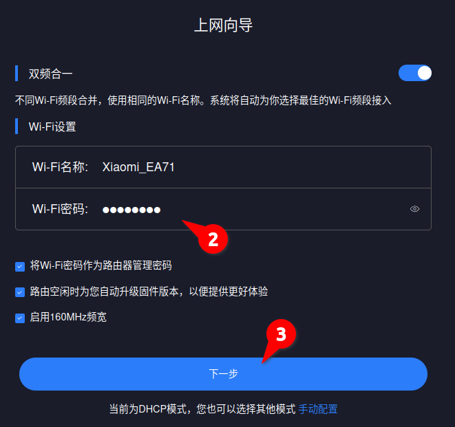 Если вы видите страницу, как на картинке, то установите пароль 123456789Ab2 и нажмите на кнопку3. Это установит одинаковые административный пароль и пароль WiFi