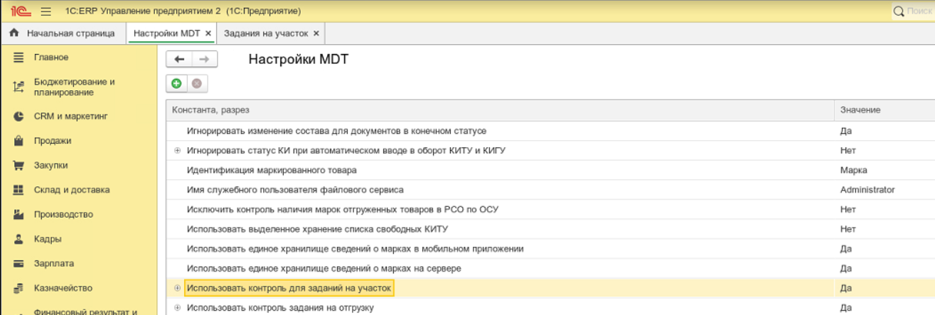 1. Для включения контроля в настройках перейти в БИТ.MDT - настройки MDT - Использовать контроль для заданий на участок - установить "Да"