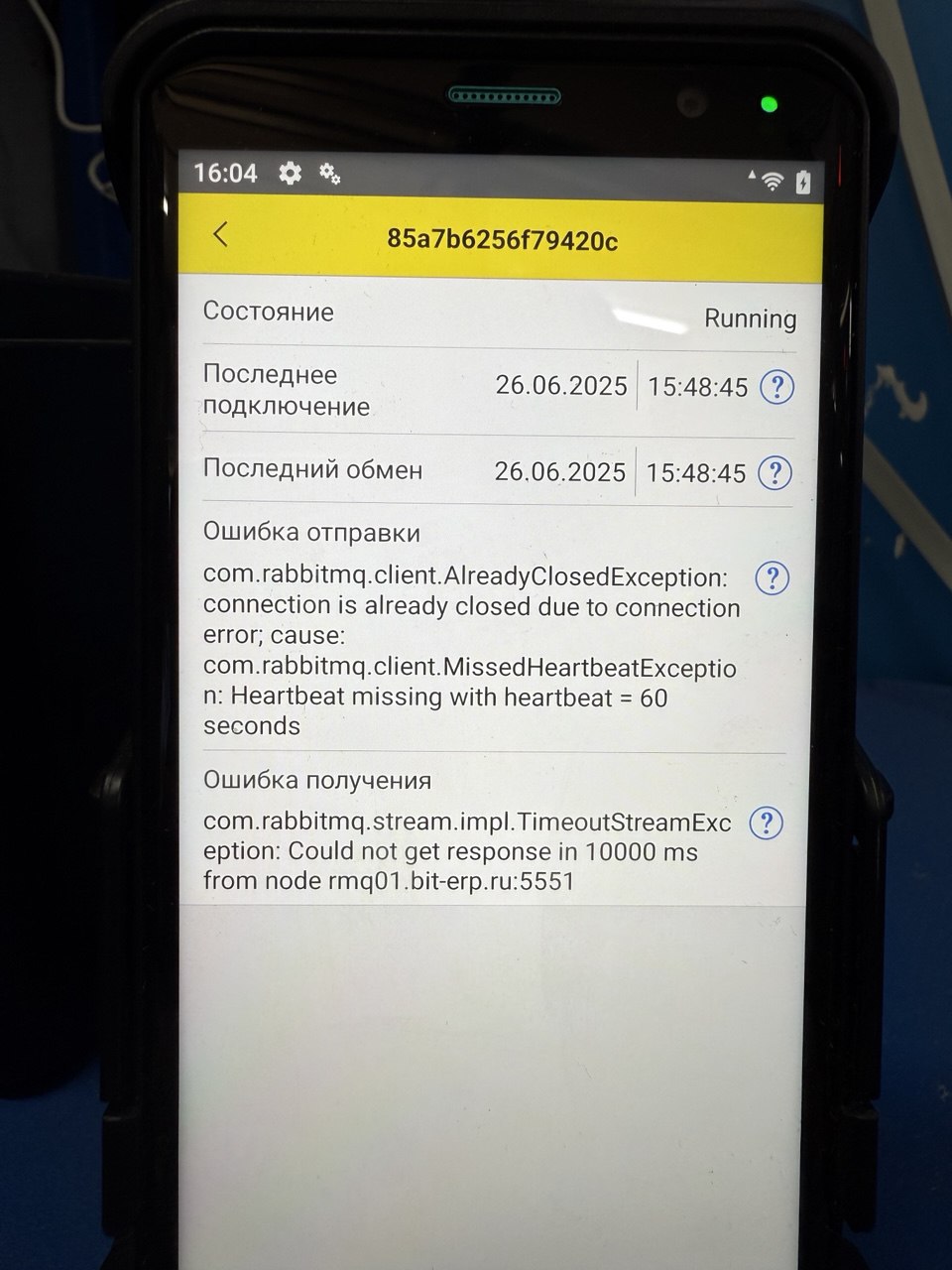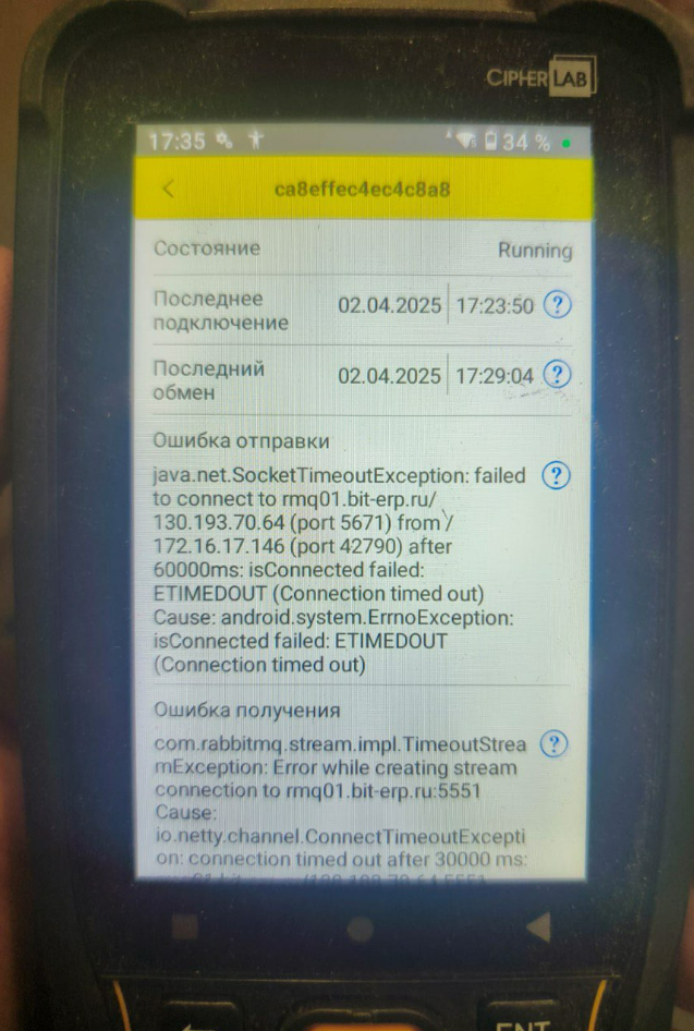 ТСД не смог за 30с получить ответ от сервера RabbitMQ