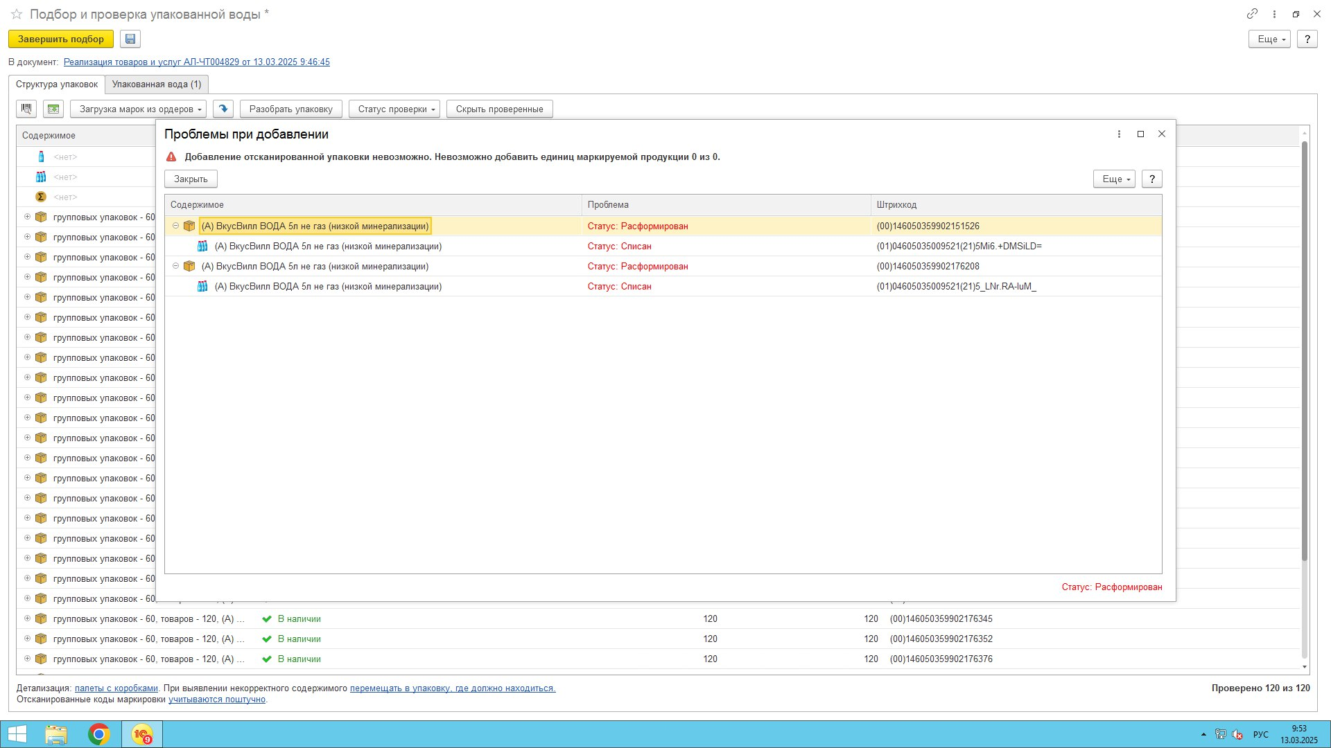 Что делать если в Проверке и подбор "проблемный" код маркировки? Помогите отгрузить товар. Как подрузить товар в реализацию.