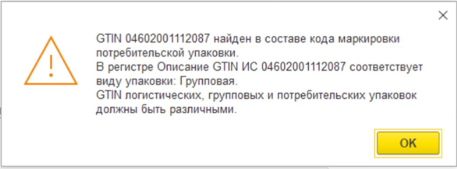 #877: Ошибка: "GTIN найден в составе кода маркировки другой упаковки"