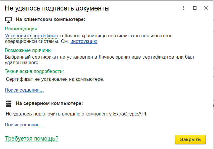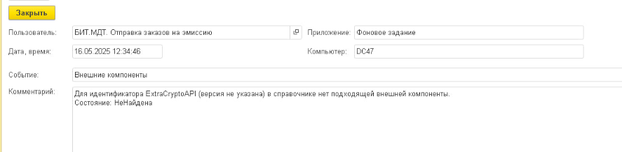 - Не оправляются заказы автоматически для идентификатора ExtraCryptoAPI в справочнике нет подходящей внешней компоненты