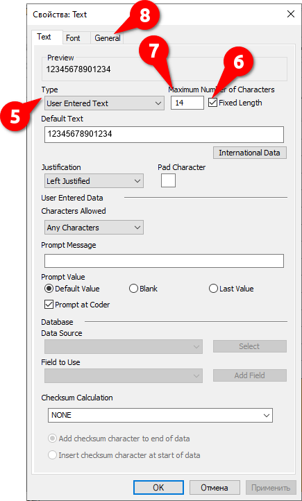 Так же необходимо знать, что если галка в Fixed Length (6) не стоит, то это не значит, что поле может быть любой длины. Длина поля не может превышать значение Maximum Number (7), даже не смотря на то, что это поле недоступно при снятой галке Fixed Length (6). Нужно поставить галку, заполнить желаемым числом Maximum Number (7) и снять галку обратно.
