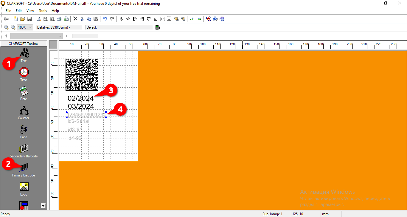 Кроме того, программой налагаются ограничения на поля datamatrix не доступные в интерфейсе, но присутствующие в финальном xml. Для их исправления, после окончательной подготовки шаблона и перед загрузкой шаблона в принтер, необходимо в текстовом редакторе отредактировать шаблон.