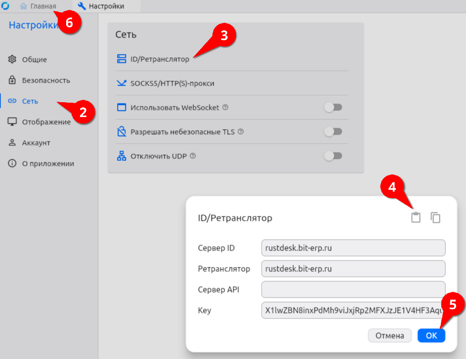 Сеть2 -> ID/Ретранслятор3. Импортируйте настройки4 и подтвердите их сохранение кнопкой ОК5