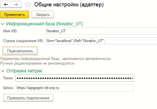 Настройка в базе 1С
